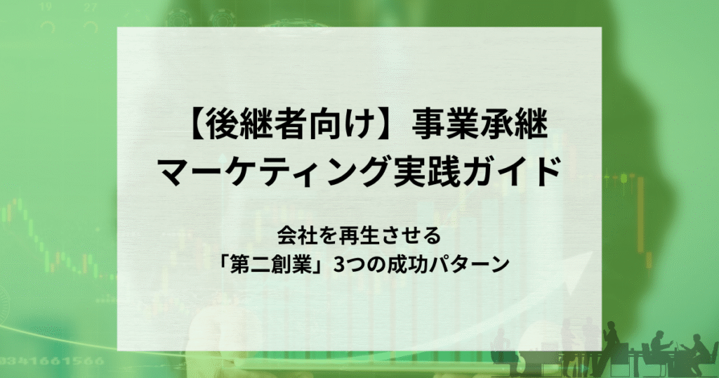 あなたは今、一人で戦っていませんか? 「会社の未来を左右する重要な決断を、誰にも相談できずにいる…」 「アイデアは次々浮かぶのに、それを形にする実行部隊がいない…」 「採用した幹部候補が、期待したほど活躍してくれなかった…」 会社の規模が大きく... 中小企業向け【2代目・後継者向け】事業承継マーケティング実践ガイド|会社を再生させる「第二創業」3つの成功パターン