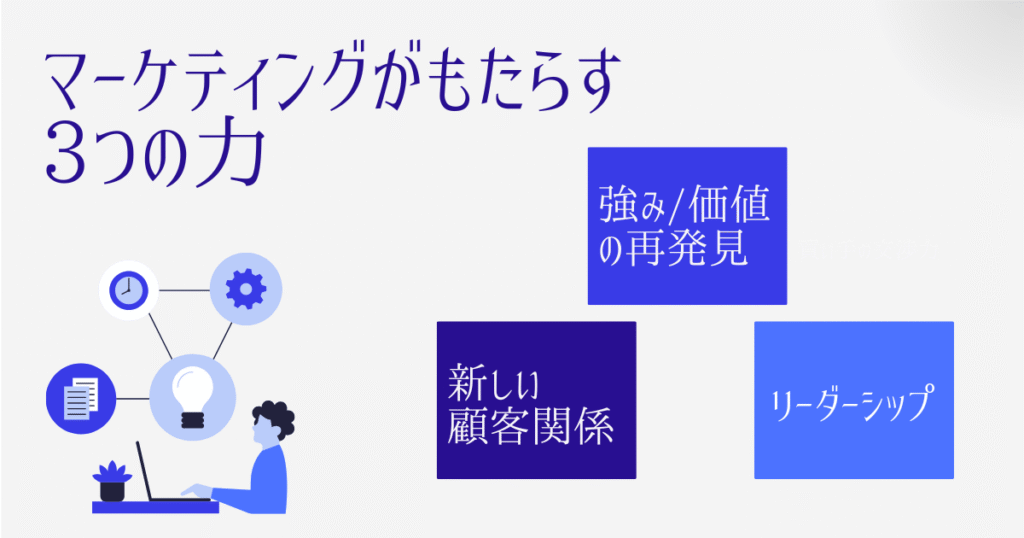 その「第二創業」を成功させるために、なぜマーケティングが不可欠なのでしょうか。それは、マーケティングが単なる「集客術」ではなく、会社の過去と未来を繋ぎ、新しい価値を創造するための「思考法」そのものだからです。