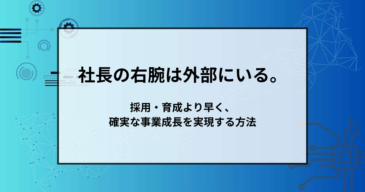 会社の成長のために「右腕」が必要だという想いは、全ての経営者に共通するものです。 しかし、その答えはもはや正社員の採用・育成という一本道だけではありません。