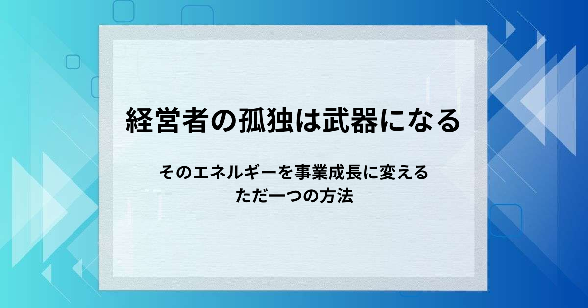 あなたが抱えるその孤独は、決して解消すべき弱さではなく、むしろ、それはあなたの会社を次のステージへと引き上げる最も強力な武器になり得るのだと、全く新しい視点を提案するものです。