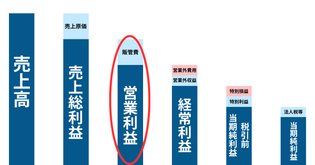 売上総利益から、商品を売るための広告費や、営業活動に直接関係しない人件費・家賃などの「販売費および一般管理費(販管費)」を差し引いた金額です。企業の本業による収益性を示します。