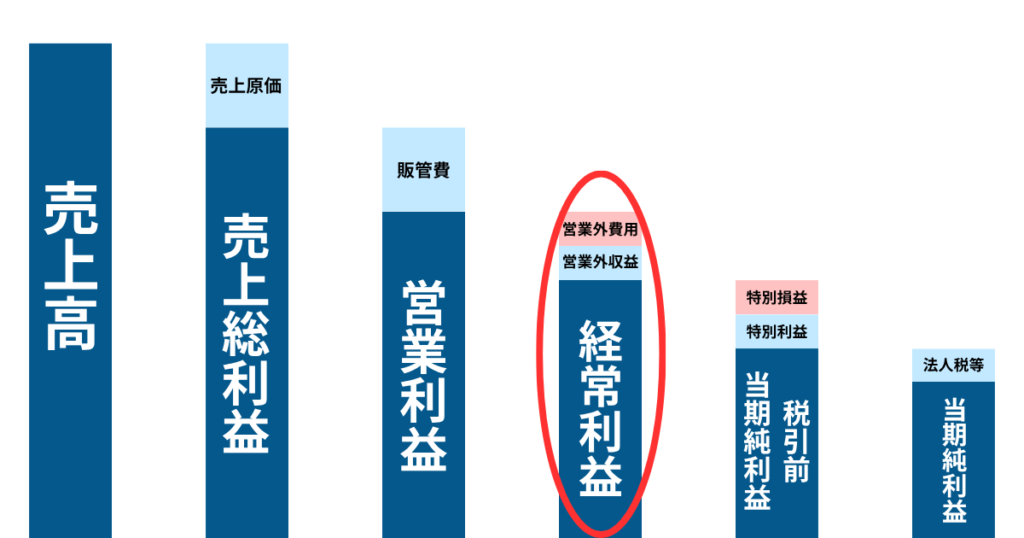 本業で稼いだ「営業利益」に、本業以外で発生した「営業外収益(受取利息や家賃収入など)」を足し、「営業外費用(支払利息など)」を差し引いた金額です。会社全体の経常的な(普段の)儲けを表します。