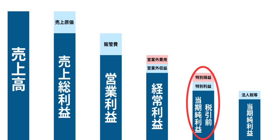 経常利益に対して、その期だけ一時的に発生した「特別利益(不動産の売却益など)」を足し、「特別損失(災害による損失など)」を差し引いた金額です。