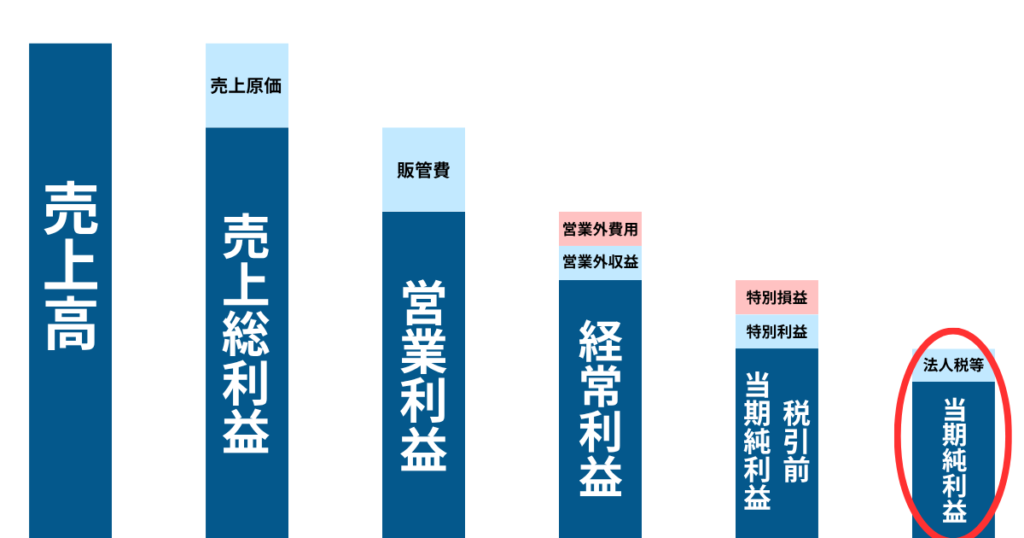 税引前当期純利益から、法人税・住民税・事業税などの各種税金を差し引いた金額です。これが最終的に企業の手元に残る利益であり、従業員の賞与や株主への配当を判断する際の指標となります。