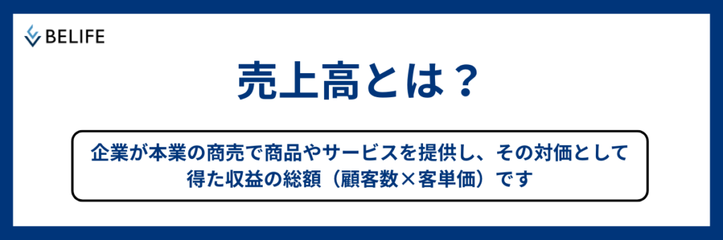 売上とは、企業が商品やサービスを販売した際に獲得する金額のことです。一定期間の売上を合計したものを売上高と呼びます。なお、預貯金の利息や有価証券の売却益といった営業外収益は売上には含まれません。