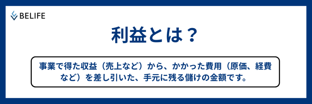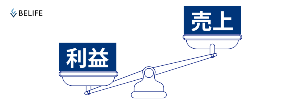 利益とは、売上高から商品の仕入れ代や人件費などの経費を差し引いた金額のことです。 企業が存続するためには、原則として売上よりも利益を重視した経営が推奨されます。ただし、創業直後や成長段階にある企業の場合は、利益を度外視してでも新規獲得やシェア拡大のための売上増大を優先すべきフェーズもあります。